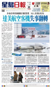 "SING TAO DAILY" (ISSN:1062-9246) is published daily for $368 per year by Sing Tao Newspapers New York Ltd. 188 Lafayette Street, New York, NY 10013. Periodicals postage paid at New York NY and additional mailing offices. POSTMASTER:Send address changes to SING TAO DAILY, 188 Lafayette Street, New York, NY 10013. 本材料由 Sing Tao Newspapers New York Ltd. 代表星島新聞集團有限公司發佈,更多相關信息可從華盛頓特區司法部獲得。 星期二 2025 年 2 月 18 日 農曆乙巳年正月廿一 NO.15754 紐約大都會版 TRI-STATE EDITION 緊貼美東最新資訊 一 SCAN 瀏覽 美 國 發 行 量 最 高 中 文 報 刊 T E L : ( 2 1 2 ) 6 9 9 - 3 8 0 0 ( 2 1 2 ) 4 3 1 - 9 0 3 0 T h e H i g h e s t C i r c u l a t i o n C h i n e s e P u b l i c a t i o n i n U S A 售價$1.00 詳刊 A5 軟件工程師已進駐 IRS 白宮施壓配合 DOGE申請權限 進入納稅人機密系統 多倫多降落機翼折斷冒煙 18人受傷3危殆 達美航空客機失事翻轉 發生翻轉事故的飛機型號為加拿大龐 巴迪CRJ-900,該機型目前已投入使用20多 年,從未發生過重大事故。此次事故的發 生,無疑給這款機型的安全記錄蒙上陰影。 根據航空安全網的飛機事故記錄報告顯 示,自2005年以來,該機型涉及的事故均未 出現人員死亡。上一次涉及CRJ-900的事故 發生在2024年11月27日,一架從格林州立機 場飛往底特律大都會韋恩縣機場的達美航 班,被迫在紐約奧爾巴尼緊急降落,好在無 人死亡。 美國聯邦航空管理局的數據顯示,此次 失事的飛機機齡約為16年,只要定期維護, 飛機通常可以運行至少20至30年。 此次意外也讓CRJ-900的研發者龐巴迪 進入更多人的視野。龐巴迪是一家總部位於 加拿大魁北克省蒙特利爾的國際性交通運輸 設備製造商,在行業內佔據著重要地位。從 員工數量看,它是世界第三大飛機製造商, 僅次於波音及空巴。 在航空領域,龐巴迪的產品豐富多樣, 涵蓋支線飛機、公務噴氣飛機等。其支線 飛機業務成就斐然,CRJ系列是極具代表 性的支線噴氣飛機,基於挑戰者CL601改 進型研製,1992年投入服務,包括CRJ - 100/200、CRJ700、CRJ900和CRJ1000等型 號,以舒適性、高速性和維護便利性深受航 空公司青睞 ,在大飛機難以盈利的航線上 發揮重要作用,曾獲得1500多架訂單和意 向,成為暢銷的支線噴氣飛機。 但在2019年,龐巴迪將CRJ項目出售給 日本的三菱飛機公司,並且退出了商用飛機 業務。 ■達美航空客機失事翻轉造成18人受傷, 機場出動救援人員前往現場處理。 路透社 ■乘客緊急撤離機艙。 視頻截圖 ■消防噴射噴霧防止飛機起火。視頻截圖 加拿大廣播公司報道指,出事客機有76 名乘客及4名機員,由美國明尼阿波利 斯出發,下午2時許飛抵多倫多。網上流傳 的一段視頻顯示,事故發生時機場地面有 積雪,客機機身在積雪的跑道上翻轉並冒 煙,一邊機翼折斷,機尾部分斷裂,有乘 客爬出機艙。另一段視頻可見空乘協助乘 客撤離機艙,救援人員向機身射水降溫。 美國聯邦航空管理局稍後證實,機上 80人全部撤離,其中15人受傷,3人(一名 60多歲男子、一名40多歲女子和一名兒童) 傷勢嚴重,但沒有生命危險。有親歷乘客 表示,在飛機撞上跑道之前,沒有任何跡 象顯示客機出問題,直到墜地一刻,忽然 所有乘客打側身,之後變成倒掛,形容一 切發生得太快。他其後自行解開安全帶, 然後跌落已翻轉的機艙頂,期間有乘客表 示不適,他聯同其他人一齊協助乘客離開 已倒轉的座位。 事發後,機場一度暫停航班升降兩個 半鐘,期間抵達航班要轉往蒙特利爾機場 降落。安省省長福特表示,對無人死亡感 到鬆一口氣,省政府官員正聯繫機場及地 方當局,提供所需的協助。加拿大交通安 全委員會派員到場調查,美國國家運輸安 全委員會亦表示,會派員協助加方調查。 目前客機失事原因暫時未知,但天氣 預報顯示,當天多倫多正遭遇大風嚴寒天 氣,平均風速達到每小時50公里,最高 風速達到時速64公里,相當於8級大 風,平均氣溫為零下7攝氏度。 機場也表示,事發當時受到高風速與 低溫影響飛行條件,加上周末期間的暴風 雪,導致機場積雪超過22公分,就連跑道 都結冰,已致200多個航班延誤。 美國之音報道指,多倫多皮爾遜國際機 場塔台的一段錄音顯示,該航班獲准著陸 時,塔台警告飛行員說,在飛機準備著陸之 際,因為前面有一架飛機,滑翔路徑上可能 會有氣流顛簸。「這種事情很罕見,」位於佛羅 里達州聖彼德堡的航空安全諮詢公司安全運 作系統的首席執行官考克斯說,「我們看到過 幾起飛機起飛時翻轉過來的案例,但這挺罕 見的。」 考克斯曾為全美航空駕駛過25年的飛 機,還參與過國家運輸安全委員會的調查工 作。他說,CRJ900是經過實際考驗的機型, 有幾十年的服役記錄,在處理惡劣天氣方面 性能良好。他說:「當時的天氣狀況是風大。 風從西邊吹來,風速為27到35節,大約相當 於每小時61公里。所以,確實風大。但飛機 的設計和認證都能夠應對這種情況。 飛行員有處理這種情況的培訓和經 驗。」 這是過去一個月來北美發生的至 少第四起重大航空事故。1月29日, 一架民航客機與一架陸軍直升機在 美國首都華盛頓附近相撞,造成 67人死亡。1月31日,一架醫療運 輸飛機在費城墜毀,機上六人和 地面一人喪生。2月6日,阿拉斯 加的一次墜機事件造成10人死亡。 美國達美航空一架載有80人的客 機,17日降落加拿大多倫多皮爾遜國 際機場時失事翻轉,導致18人受傷, 當中3人危殆,包括1名小童。當局暫 未公