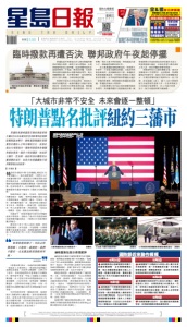 Ѕ坆٠ 395 Oyster Point Blvd. Suite 215, South San Francisco, CA 94080 ✕ ݣ Unit12,Wing Yip Business Centre 395 Edgware Road, Cricklewood, London NW2 6LN, UK ԅ לܔ 221 Whitehall Drive, Markham, Ontario L3R 9T1, Canada ࡐ 㬗䭔 17059 Green Drive, City of Industry, CA 91745 ޅ ㈩ ݺ ⷯனࡵ偃ड 電話:(852) 2798-2323 星島新聞集團大廈 傳真:(852) 2751-8634 香港新界將軍澳工業邨駿昌街七號 新聞網址: www.singtao.com 吤ԅցі恗垰 Chicago Office 155 N. Harbor Dr., Chicago, IL 60601 電話: (312) 927-5621 ݰ 刖 Editorial / Reporting 電話: (212) 699-3800按129 傳真: (212) 625-0845 電郵: editor@nysingtao.com Ӣ桗㏛ղ Classified Advertising 電話: (212) 699-3808 (212) 699-3800 傳真: (212) 699-3833 電郵: classified@nysingtao.com ষ㬴偃ड .+'*7;'8:+89 電話: (212) 699-3800 188 Lafayette Street, (212) 431-9030 New York, NY 10013 傅真: (212) 699-3828 網址: www.singtaousa.com 微信號: SingTaoNY אࡇ 栌і恗垰 盛雄莊 Shing Hong Trading 70 Kneeland St., Boston, MA 02111 電話: (617) 820-3209 傳真: (617) 956-0628 伛伏١घ㉋і恗垰 中原參茸坊 5411 8th Ave, Brooklyn, NY 11220 電話: (718) 438-3515 傳真: (718) 438-5290 嬮旭Ղ䤙ਸ਼ Subscription Circulation 電話: (212) 699-3800按162 傳真: (212) 699-3833 電郵: cir@nysingtao.com 㳰㏛ղ Display Advertising 電話: (212) 699-3800按106 傳真: (212) 431-1816 電郵: sales@nysingtao.com A2 10.01.2025 星期三 要聞 憤怒政治 麻醉民主的毒藥 特朗普9月29日在白宮會見以色列總理內塔尼 亞胡,期間提出20點加沙和平方案,獲內 塔尼亞胡支持。但該提案要求哈馬斯解除武裝, 遭到該組織拒絕。 路透社報道,特朗普9月30日在離開白宮時 表示,哈馬斯有幾天時間回應和平方案:「我們 將給大約三到四天時間。以色列和阿拉伯領導人 已經接受了提議,我們只是在等待哈馬斯。哈馬 斯如果不這麼做,下場將會非常悲慘。」他警告 說:「我們只差一個簽字,如果他們(哈馬斯)不 簽,將會下地獄,我希望他們為了自己好能簽 字。」當被問及是否還有談判空間時,特朗普回 答說:「沒有太多。」哈馬斯若不接受,以色列將 獲美國「全力支持」完成戰爭目標。內塔尼亞胡補 充,如果哈馬斯拒絕或假意接受再破壞協議,以 色列將「自行完成任務」。 一名接近哈馬斯的消息人士認為,該方案 「完全偏向以色列」,提出了旨在消滅哈馬斯的 「不可能的條件」。據《衛報》報道,哈馬斯官員 稱,將先在內部與其他巴勒斯坦派系討論和平方 案,再做出回應。該組織已開始在巴勒斯坦境內 外的政治和軍事領導層內進行一系列磋商,但由 於領導層成員和各派系之間的溝通複雜性,這將 需要幾天時間。 設在約旦河西岸的巴勒斯坦民族權力機構表 示樂見和平計劃,並承諾在戰爭結束後會推動改 革。其他阿拉伯國家對和平計劃反應積極,約 旦、埃及、印尼、巴基斯坦、土耳其以及海灣國 家卡塔爾、沙特阿拉伯和阿聯酋的外交部長發表 聯合聲明表示歡迎。 教宗良十四世讚揚了方案,並表示希望哈馬 斯能夠在既定的時間內接受。德國總理梅爾茨則 表示,特朗普提出的計劃是「結束戰爭的最佳方 案」,他稱以色列對該計劃的支持是「向前邁出的 重要一步」,現在哈馬斯必須同意,為和平鋪平 道路。德國外交部長瓦德富爾也表示,這是一個 不容錯過的「一次性機會」,這項提議「為加沙數 十萬苦難中的民眾帶來了希望」。法國總統馬克 龍在X發帖稱,哈馬斯「別無選擇,只能立即釋 放所有人質,並執行這一計劃」。英國首相施紀 賢則呼籲哈馬斯立即接受方案,「放下武器,釋 放人質,結束苦難」。歐盟委員會主席馮德萊恩 也發表了類似聲明,鼓勵各方抓住機遇。她也在 X平台上寫道:「歐盟隨時準備做出貢獻」。 中國外交部發言人郭嘉昆在例行記者會上表 示,中方歡迎和支持一切有利於緩解巴以緊張局 勢的努力,呼籲有關各方切實落實聯合國有關決 議,立即實現加沙全面停火、釋放全部被扣押人 員,盡快緩解當地人道主義災難。他還強調,中 方主張堅持「巴人治巴」原則,推動落實兩國方案。 俄羅斯總統發言人佩斯科夫則表示,俄羅斯支持 並歡迎「特朗普為結束當前悲劇所做的一切努力」。 美國總統特朗普9月30日表示,哈馬斯 有「三到四天時間」接受他提出的20點加沙 和平方案,否則將迎來「悲慘下場」。哈馬 斯將先在內部與其他巴勒斯坦派系討論方 案後做出回應。 特朗普向哈馬斯下最後通牒 三到四天內接受和平方案 否則「下場悲慘」 ▍本報訊 ▍ 加沙民眾不抱期望 痛斥 「鬧劇」 加沙和平計劃提出之際,以色列的砲火 仍未停息,接受哈馬斯管轄的加沙民防機構 稱,以方的襲擊在9月29日造成加沙全境至 少30人死亡。飽受戰爭蹂躪的加沙居民對計 劃表示懷疑,認為這只是釋放人質的伎倆, 並不能結束戰事,更有巴勒斯坦人形容該提 案是一場「鬧劇」。 法新社報道,從加沙北部的家鄉流落到 中部代爾巴拉赫的52歲的納薩爾說:「這全 是玩弄手段。在沒有官方保證結束戰爭的情 況下交出所有戰俘,到底意味著甚麼?我們 作為一個民族,不會接受這場鬧劇⋯⋯無論 哈馬斯現在對這項協議做出甚麼決定,都為 時已晚。」他說:「哈馬斯已經失去了我們, 並把我們淹沒在他們製造的洪水中。」 來自加沙城的47歲男子貝爾塔吉在談 到談判時說:「一如既往,以色列同意,哈 馬斯拒絕,或者倒過來。這一切全是一場遊 戲,而我們,人民,才是付出代價的人。」 在阿爾馬瓦西人道主義區的避難所的 39歲電