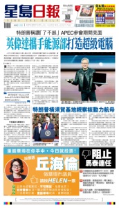"SING TAO DAILY" (ISSN:1062-9246) is published daily for $368 per year by Sing Tao Newspapers New York Ltd. 188 Lafayette Street, New York, NY 10013. Periodicals postage paid at New York NY and additional mailing offices. POSTMASTER:Send address changes to SING TAO DAILY, 188 Lafayette Street, New York, NY 10013. 本材料由 Sing Tao Newspapers New York Ltd. 代表星島新聞集團有限公司發佈,更多相關信息可從華盛頓特區司法部獲得。 星期三 2025 年 10 月 29 日 農曆乙巳年九月初九 NO.16007 紐約大都會版 TRI-STATE EDITION 緊貼美東最新資訊 一 SCAN 瀏覽 美 國 發 行 量 最 高 中 文 報 刊 T E L : ( 2 1 2 ) 6 9 9 - 3 8 0 0 ( 2 1 2 ) 4 3 1 - 9 0 3 0 T h e H i g h e s t C i r c u l a t i o n C h i n e s e P u b l i c a t i o n i n U S A 售價$1.00 詳刊 A5 促動用應急基金 維持4200萬國民補貼 糧食券周末斷供 逾20州聯手告白宮 美籍猶太律師團主持的十大綜合性律師樓 陪移民局面試 快速 F1/H1/L1/O1/K1及投資移民 政庇綠卡被查 特快601A 商標版權 親屬移民 金&揚聯合律師樓 曼哈頓第七大道450號305室 212-279-5442/212-760-0972 位於曼哈頓中城 處 理 全美50州 特快保釋 ഝ㎐ֵ̣ᘷͬ പౕ╒ଜୗ غ ᨾ ᠘྇⒞⏟໌̼२᪶ ⑵ስූnj⑵⡯ᰉಐnj ֛ଆ୳؏ፐ⊝ᢊ / # #" ᣠ ޡ ㆵ᪈ 㪩்⚌ ښ ͯίₕ㢀ᘷͬ 黃仁勳28日中午在華盛頓舉行的英偉達 (NVIDIA)GTC技術大會發表主題演 說時宣布前述計劃。據鉅亨網綜合報道,英 偉達為美國能源部打造的超級電腦,有一部 分將用於維護與發展美國的核武庫,另一部 分則將用於研究替代能源,例如核融合。這 7部超級電腦中,規模最大的那部將由英偉 達與甲骨文合作建造,搭載10萬顆的英偉達 Blackwell芯片。黃仁勳說:「以舉國之力推動 能源成長,讓局面徹底改變。如果沒有這件 事,我們可能會陷入困境,在此我要感謝特 朗普總統。」 報道稱,這次是英偉達GTC大會首度選 在華盛頓特區舉行,顯示英偉達正積極尋求 與美國政府及首都周邊的包商合作。 但黃仁勳也提到,英偉達在中國市佔率 從95%降到0%,而且考量到中國的立場,尚 未替Blackwell芯片申請出口許可。他說身為全 球AI競賽的核心角色,英偉達接到來自世界 各地的訂單,但也必須在攸關全球科技領導 地位的美中貿易戰當中謹慎前行。 投資者無不希望得知英偉達能夠在龐大 的中國市場銷售哪些芯片,但黃仁勳並未提 供時間表。 市值逼近5萬億美元 英偉達28日宣布一連串合作案,股票上 漲5%,距離5萬億美元市值整數大關更近一 步。報道稱,這些合作案中的一項是與芬蘭 電信設備商諾基亞的合作,目標鎖定AI通訊 市場。根據曝光的細節,英偉達將投資10億 美元以取得諾基亞2.9%股權,並推出專為電 信設備設計、名為「Arc」的新產品線。黃仁勳 表示,英偉達將提升諾基亞6G基地台的能源 效率,「我們要好好應用這項新技術應用,升 級全球數以百萬計的基地台。」 同時,英偉達還宣布與美國政府密切合 作的Palantir Technologies建立夥伴關係,不 過合作重點在Palantir的商業部門,英偉達將 協助Palantir為企業解決物流問題。這類企業 應用一直是英特爾的強項。英偉達還發布新 的自駕車技術平台Hyperion。黃仁勳表示, 英偉達正與Uber合作建立自駕的士網絡,「這 將成為我們新的運算平台,我預期會非常成 功。」 據黃仁勳透露,總共加起來,Blackwell和 Rubin芯片在未來五季的訂單總額達到5000億 美元。 有分析師表示,「這些合作案顯示,英偉 達有能力把觸角延伸到核心數據中心客戶以 外的領域。」 黃仁勳GTC大會演說之際,美國總統特 朗普正在亞洲訪問。據美聯社報道,特朗普 表示,29日抵達韓國,參加APEC期間將與 黃仁勳會面,他形容對方了不起,傑出及聰 明。 特朗普在東京向日本商界領袖發表講話 時,又祝賀英偉達與台積電早前生產出速度 極快及最先進的Blackwell芯片,稱芯片完全 在美國製造,又指兩間公司與其他芯片生產 商,正在美國投資數千億美元,華盛頓正致 力加快AI基礎設施建設。 特朗普稱讚「了不起」APEC參會期間見面 AI芯片巨頭英偉達CEO黃仁勳28日稱,將與能源部攜手建造7台AI超級電腦,讓 美國立於科學研究前沿。英偉達也將與諾基亞合作,開發搭載BlackwellGPU的全新 無線路電腦,能夠同時進行無線通訊與AI運算,使美國成為6G革命核心。特朗普29 日表示將在韓國與黃仁勳會面,形容對方了不起、傑出、聰明。 ▍本報訊 ▍ 英偉達攜手能源部打造超級電腦 在日本首相高市早苗的陪同下,特朗普 28日乘搭直升機抵達日本神奈川縣橫須賀市 的美國海軍橫須賀基地,視察核動力航空母 艦「喬治.華盛頓」號。 特朗普在航空母艦上演講,並邀請日本 首相高市早苗上台,強調說「美日同盟是全球 最卓越關係」,高市早苗則指將從根本上加強 防衛力。 日媒認為,特朗普視察核動力航空母艦 的舉動意在彰顯威懾力。據悉,特朗普在演 講時,承諾將加強美日安全合作,指美日同 盟關係是全球最卓越的關係之一,亦是太平 洋地區保持和平安全的基礎。他又說,已批 准交付首批供日本自衛隊F-35戰機使用的導 彈,本周內就會送達,比原定時間更早,但 無交代導彈的數量與型號等詳情。 高市就說,目前安全環境面臨的嚴峻局 面是前所未有,強調無法單靠空談實現和 平,只有堅定不移的決心並付諸行動,才能 守護和平,重申致力從根本上加強日本的 國防、威懾和應對能力,加強日美多層次合 作,日本準備好為地區和平與穩定作出更積 極貢獻。 橫須賀基地是負