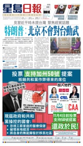 版面索引 Sing Tao Daily(USPS 497120)is published daily by Sing Tao Newspapers(S.F.)Ltd. at 395 Oyster Point Blvd, Ste 215, South San Francisco, CA 94080. Main line(650)808-8800. World rights reserved. Periodicals postage paid at San Francisco, California and at additional mailing offices. POSTMASTER: Send address changes to: Sing Tao Daily, 395 Oyster Point Blvd, Ste 215, South San Francisco, CA 94080. Sub Rate: CA $350/yr. HI , WA , OR State & Other State:$470/yr 本材料由Sing Tao Newspapers San Francisco Ltd.代表星島新聞集團有限公司發佈,更多相關信息可從華盛頓特區司法部獲得。 A 要聞 / 美國 / 國際 / 中國 / 台灣/ 體育 / 香港 B 美西 / 灣區 / 加州 / 社區 / 財經 C 娛樂 E 分類 F 副刊 2 0 2 5年1 1月3日 農曆乙巳年九月十四 美西版 NO.30409 灣區 晴 63℉~54℉ 夏威夷 雲 82℉~73℉ 西雅圖 雨 49℉~45℉ 俄新型核潛艇亮相 威懾意味濃 悟空西遊過金山 偶藝體驗美猴王 詳刊 A3 詳刊 B1 特朗普與習近平早前在韓國 APEC峰會期間會面,已經回 到美國的他在哥倫比亞廣播公司 (CBS)11月2日播出的《60分鐘》節 目專訪中提到,在與習近平的會談 中,「台灣這個話題從未被提起」。 主持人問道,「我知道你曾表 示,習近平不敢在你的任內對台灣 採取軍事行動。但如果他真的這麼 做呢?你會下令美軍保衛台灣嗎?」 特朗普沒有正面回答,僅表示:「如 果真發生了,你們就會知道了,而 且他(習近平)清楚答案」。特朗普表 示,習近平完全沒提起台灣,也許 大家對此有點驚訝,他之所以沒提 台灣,「因為他明白這一點,他非常 了解」。 主持人追問,若中國大陸對台 灣發動軍事攻擊,是否會下令美軍 保衛台灣?特朗普拒絕透露具體方 案:「我不能洩露我的祕密。」他指 出,習近平及中方官員均曾「公開表 示」,只要他還在任美國總統,中國 就絕不會對台採取行動。 和台灣相關的問題在特朗普此 次亞洲行期間被多次提到,頻率超 過以往美國總統亞洲之行。特朗普 在出發時就曾表示,希望中方不要 冒險攻台,「那對他們來說可能極為 危險」。與習近平的會結束後,特朗 普在返美途中再次表示,台灣問題 並未納入討論內容。由此可見,特 朗普與習近平在會晤時似乎刻意回 避了台灣問題,轉而將焦點放在緩 和中美之間的貿易戰。 美聯社報道,中國駐美大使館 發言人劉鵬宇沒有直接回應有關特 朗普是否從習近平或中國官員得到 任何關於台灣問題的保證。他強 調,中國「絕不允許任何人或任何勢 力以任何方式將台灣與中國分離」。 劉鵬宇發表的聲明稱,台灣問題是 中國內政,是中國核心利益的核 心。如何解決台灣問題是中國人自 己的事,也只有中國人民才能決定。 白宮也沒提供更多細節,說明 習近平或中國官員何時向特朗普傳 達了在共和黨總統任期內,不會對 台灣採取軍事行動的訊息。 1979年的「台灣關係法」規範美 國與台灣的關係,該法並未要求美 國在中國大陸攻台時必須出兵干 預,但確立美國政策,即確保台灣 擁有自我防衛的資源,並防止北京 片面改變現狀。 如果說美國在台灣問題上長期 採取「模糊政策」,特朗普的前任拜 登則對此有明確的表態,2024年, 拜登接受《時代》雜誌專訪時重申, 不排除美國動用武力保衛台灣的可 能性。在此之前,他至少4次在不同 場合作出類似表態。 這次《60分鐘》的訪談,是特朗 普與CBS達成和解以來,首次在該 節目中露面。特朗普去年控告《60分 鐘》美化前副總統、民主黨總統候選 人賀錦麗,指涉嫌干預選舉,要求 至少賠償100億美元。 特朗普在空軍一號上還對記者 表示,Blackwell芯片比其他芯片領 先十年,美國政府並不傾向於允許 海外廣泛獲取這種珍貴芯片。他早 前曾暗示,可能會在習近平會面當 中討論芯片問題,但最終表示未被 提及。 ■美國總統特朗普(左)接受CBS節目《60分鐘》專訪時說,在韓國與習近平 會晤時並未提及台灣問題。圖為《60分鐘》節目發布的訪談預告片。 路透社 見習近平時未提台灣 聚焦經貿話題 特朗普:北京不會對台動武 中國絕不允許任何人或 任何勢力以任何方式將台灣 與中國分離。 中國駐美大使館發言人 劉鵬宇 ▍本報訊 ▍ 美國總統特朗普表示,與中國國家主席習近平會晤時並未提及 台灣問題,習近平知道對台灣動武的後果,共和黨執政任期內,中國 大陸不會對台灣採取行動。對此,中國駐美國大使館發言人劉鵬宇聲 明,台灣問題是中國內政,如何解決台灣問題是中國人民自己的事。 售價$1.00 Retail price 灣 區 銷 量 第 一 北 美 銷 量 冠 軍 #1ChineseNewspaper in theBay Area andNorthAmerica 總 機 電 話 : ( 8 0 0 ) S I N G T A O 售價 $0.91 加稅 ($0.91 plus tax) www.singtaousa.com 星期一