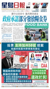 聯邦減息貸款項目 Pacific Prime Financial 請盡快聯絡鄭先生 650-889-6382 NMLS Lender License #1976186 買房屋查收入,0% 首期,利率 4.99% 不查收入,3.5% 首期,不查首期存款, 不查工作證明 重新貸款和第二貸款現金周轉計劃 買賣房屋短期貸款,12 個月不需供款 政府 SB9 政策貸款項目,買地建築貸 款或裝修貸款,只需 10% 首期。 加建貸款,可加建至四單位,更可全額 貸款,無需估價 李丹丹 Linda Li 黃奇軒 Alvin Huang 地址: 1601 Old Bayshore Hwy Ste 360, Burlingame, CA 94010 E-mail: loans@al lel i teloan.com 精通國、粵、閩及英語 ● 21年貸款經驗,專門做不查收入和查收入貸款 ● 20%首付不看報稅表無需提供工作證明 ● 不查收入自顧人士可以10-15%首付 ● 無需會計CPA 簽名P&L 文件 ● 可以接受100% 贈送首付和備用金 ● 無需信用歷史也可以做到貸款 ● 外國人貸款買房,重新貸款沒問題 ● 自己有房子再買出租可以0首付 ● 工作沒有兩年也可以享受正常查收入的利息 415-725-8686 415-810-5051 NMLS 253085 933303 DRE 01375866 01473939 ‧3%首期可貸 up to $417,000.00 ‧10%首期可貸 up to $625,500.00 ‧大額貸款 up to $500萬 ‧一年 After foreclosure 可貸款 ‧投資物業套現貸款,無須等 6 個月 ‧投資物業置業貸款,可借高達 20 個物業 ‧精辦低收入者貸款 3 ,可貸高達 $41 ‧ 1 首期,可貸高達 97 ,00 ,可貸高達 $5,000,000 投資物業可以不查報稅表,外國人 OK 6 20 ‧被拍賣 (Foreclosure)1年後可貸款 415-710-3389 傳真 Fax: 866-803-6089 Email: jeewunglow@googain.com 1350 Bayshore Highway # 380 Burlingame, CA 94010 CalBRE#01490339,NMLS#256330 0 Point, 0 Fee CalBRE#01525887, NMLS#275975 廣告熱線: 650-808-8888 東 灣 Lucky 815 MARINA VILLAGE PKWY ALAMEDA CA 94501 Safeway 2227 S SHORE CTR ALAMEDA CA 94501 Lucky 3443 CASTRO VALLEY BLVD CASTRO VALLEY CA 94546 Lucky 5190 CLAYTON RD CONCORD CA 94521 Safeway 5021 LAGUNA BLVD ELK GROVE CA 95758 Lucky 35820 FREMONT BLVD FREMONT CA 94536 Walgreens 3860 DECOTO RD FREMONT CA 94555 Lucky 22555 MISSION BLVD HAYWARD CA 94541 Lucky 1590 SYCAMORE AVE HERCULES CA 94547 CVS 3320 FRUITVALE AVE OAKLAND CA 94602 Lucky 247 E 18TH ST OAKLAND CA 94606 Walgreens 301 E 18TH ST OAKLAND CA 94606 Lucky 1530 FIZGERALD DR PINOLE CA 94564 CVS 699 LEWELLING BLVD SAN LEANDRO CA 94579 Lucky 1300 FAIRMONT DR SAN LEANDRO CA94578 Lucky 15840 HESPERIAN BLVD SAN LORENZO CA94580 星島日報 新增連鎖 銷售報點 查詢 : 650-808-8866 C4 11.04.2025 星期二 中國娛樂 闞清子在《新還珠格格》扮演「欣榮格格」一 角走紅,與紀凌塵有過一段姐弟戀,2023年傳 出被圈外男友求婚,今年7月宣布懷孕,並透露 自己從原本45公斤的體重增加至60公斤,整個 人變得圓潤,將其形容為「甜蜜的負擔」和「母愛 的勳章」,展現對孕期身體變化的正面態度。 近期她在社交平台曬出孕晚期為品嚐網紅 小吃「晴王冷萃奶皮子糖葫蘆」而排隊兩小時的 經歷,視頻中她素顏出鏡,臉色紅潤狀態極 佳,在試吃多種口味的糖葫蘆後,一臉滿足的 表示「兩小時的排隊很值當」,由此可見對味道 比較滿意。網友紛紛表示,「姐姐胃口好,吃的 嘎嘎香。」 演員董璇9歲女兒「小酒窩」(本名高舒喬) 在北京機場遭遇一名陌生男子強制合影,引發 廣泛關注。 據網傳視頻可見,「小酒窩」在機場行走 時,一名男子未經詢問或同意,突然俯身貼近 並用手機強行拍攝合影,導致她瞬間被驚嚇, 本能地轉頭躲閃並後退,表情從微笑轉為驚慌。 同行女性工作人員見狀,果斷拉開該男子 並護送她離開現場,「小酒窩」情緒明顯未平 復,眼神慌亂。 「小酒窩」是董璇與高雲翔的女兒,因臉頰 酒窩得名,外形出眾,性格開朗,在機場會主 動分享玩具,在綜藝中會體恤母親情緒,被贊 暖心,參演過《拆案2》、《墨雨雲間》、《四海重 明》等影視劇。 ■董璇常帶女兒外出遊玩,圖為母 女倆合影。 網上圖片 宋茜在劇中第一集穿著艷麗 紅衣在城牆上舞劍,每個 動作都很俐落,加上高顏值, 整段戲讓人印象深刻。 不過,眼尖網友卻發現她 不管是外層紅衣內層白衣的設 定,還是髮上所繫的飄逸紅絲 帶,以及手中握著的寶劍,甚 至是舞劍的姿勢,竟然都與劉 詩詩在《一念關山》的經典造型 高度相似,立刻掀起造型抄襲 風波,不少網友砲轟《山河枕》 造型師太懶惰,竟然整組造型 照抄,還用在女主首度露面的 重要戲分,相當尷尬。 《山河枕》雖然爆出抄襲風 波,但因主角演技到位,加上 劇情緊湊,收視及熱度仍雙雙 奪冠。 其中,丁禹兮將「衛韞」的 心境轉折,以及走到低谷想要 不顧一切找出父兄戰死真相的 決心,詮釋得令人動容;宋茜 也將想找出父親戰死真相的將 門之女,演得非常鮮活。 兩人另類的叔嫂CP也非 常有看點,因此熱度及收視狂 飆,打趴同檔由羅雲熙主演的 《水龍吟》,以及龔俊、彭小苒 的《暗河傳》,還有成毅、李一 桐的《天地劍心》,成績相當亮 眼。 丁禹兮與宋茜主演的古裝新劇《山河枕》正在熱播中, 但宋茜劇中最搶眼的紅衣造型,卻被眼尖網友揪出與劉詩 詩在《一念關山》的造型高度相似,引發抄襲風波,同時也 點燃戲迷怒火,砲轟《山河枕》造型師太偷懶。 闞清子分享孕期生活 董璇女兒遇陌生男強制合影 臉色紅潤狀態好 敖瑞鵬因參加戀愛實 境秀《戀夢空間》而進入娛 樂圈,之後憑藉在《少年歌 行》中飾演「雷無桀」一開打 開知名度。未料,近期在 上海晚高峰時段遭遇兩輛 私家車惡意逼停圍堵,目 前工作室已報警處理,事 件引發對私生飯(指過度侵 犯藝人隱私的極端粉絲)行 為危害公共安全的廣